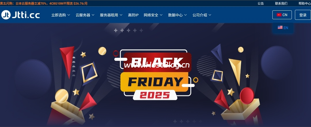 Jtti黑五闪购:日本云服务器年付$27.7起,4C8G10Mbps不限流量$26.76/月,终身循环折扣